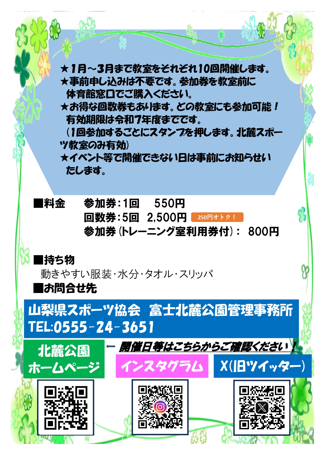いつでも気軽に!!北麓スポーツ教室を開催します!